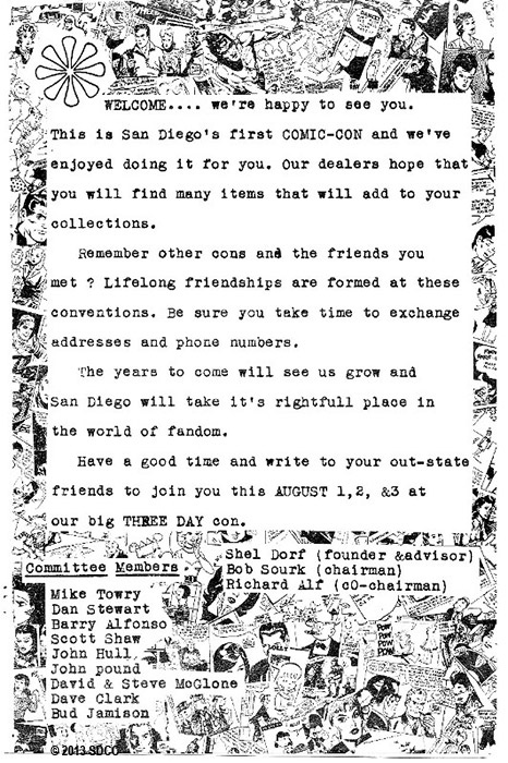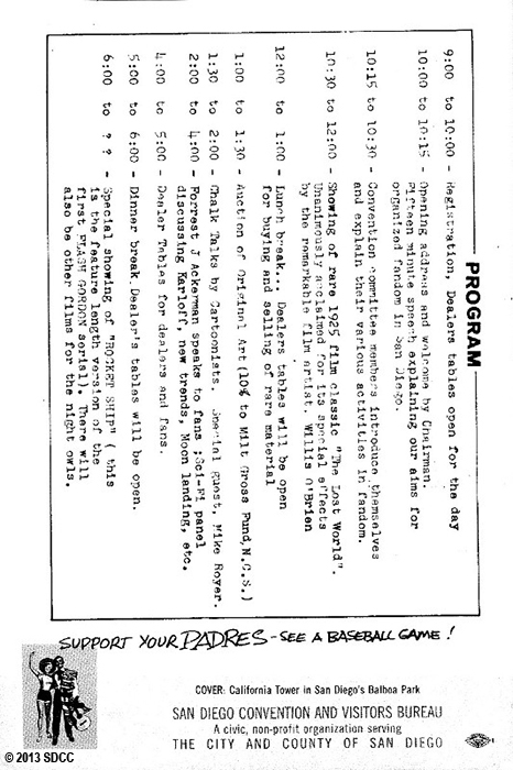 The official welcome notes that “The years to come will see us grow and San Diego will take it’s [sic] rightfull [sic] place in the world of fandom.” That worked out pretty well, didn’t it?