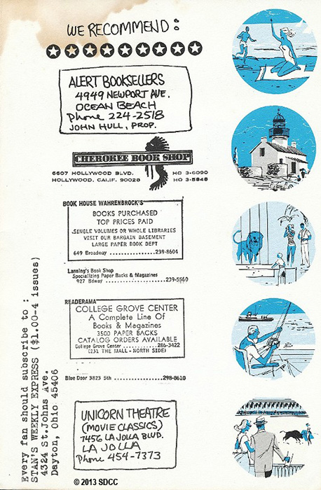 Oh, to be able to travel back in time to visit some of these places! The Cherokee Book Shop in Hollywood was a legendary place with comic fans in that era, and Wahrenbrock’s Book House in San Diego was a downtown fixture up until just a few years ago.